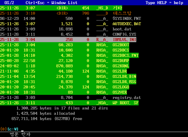 VirtualBox에 설치한 ArcaOS의 프롬프트 창들