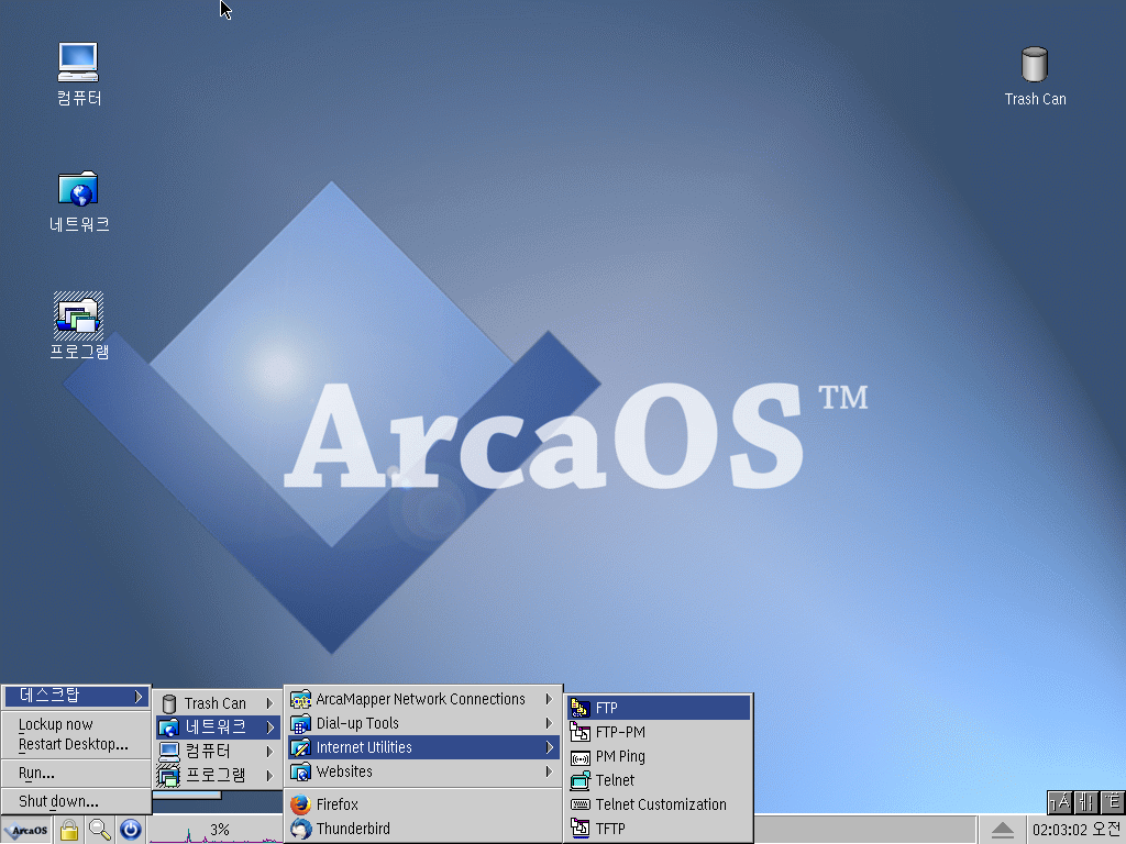 VirtualBox에 설치한 ArcaOS의 네트워크 중 ftp 등