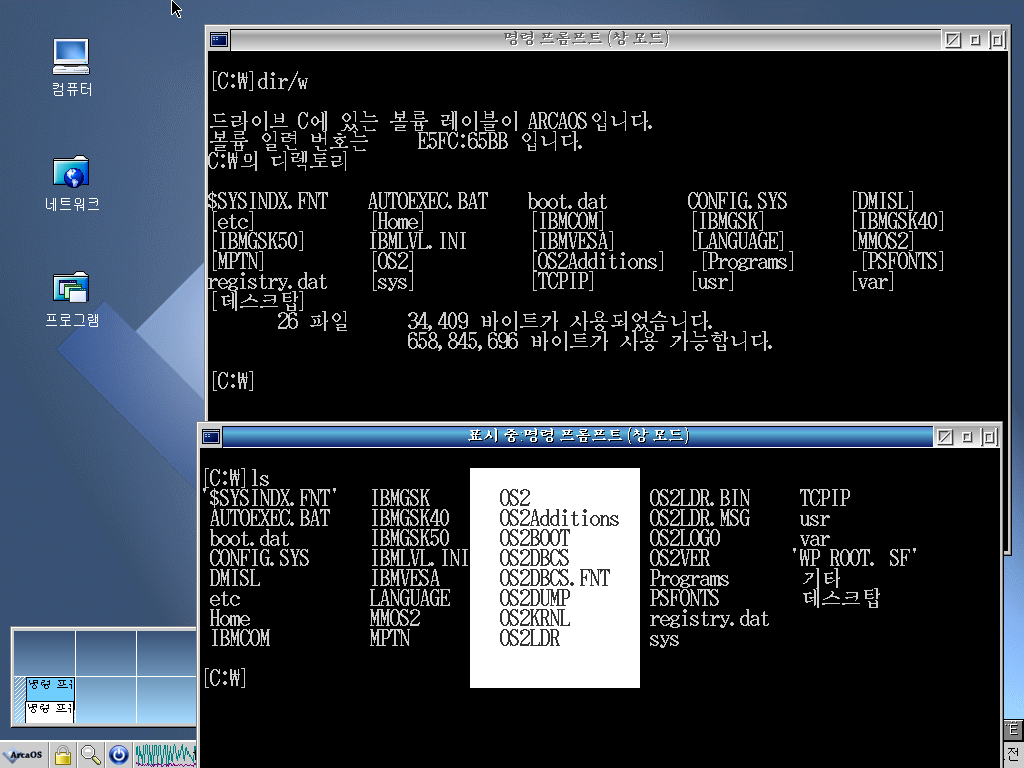 VirtualBox에 설치한 ArcaOS의 명령프롬트프 2