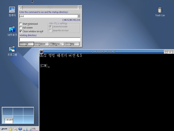 VirtualBox에 설치한 ArcaOS의 명령프롬트프 3